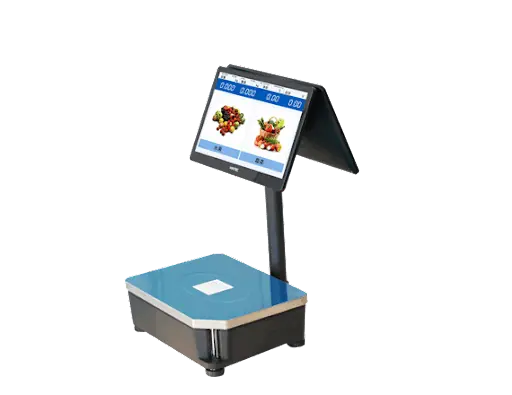 משקל המדבקות מגיע עם מסך קדמי גדול לשימוש המוכר וצג אחורי קטן יותר לתצוגת המשקל ופרסומות לרוכש.