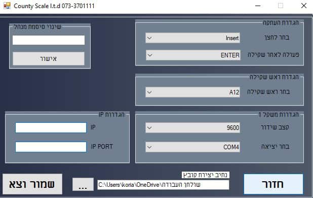 תוכנת שקילה HOTKEY להתממשקות לתוכנות חיצוניות