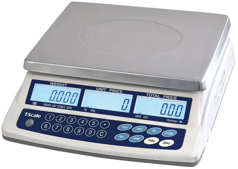 שלוש תצוגות לקריאת משקל, מחיר לק”ג וסה”כ מחיר לתשלום.